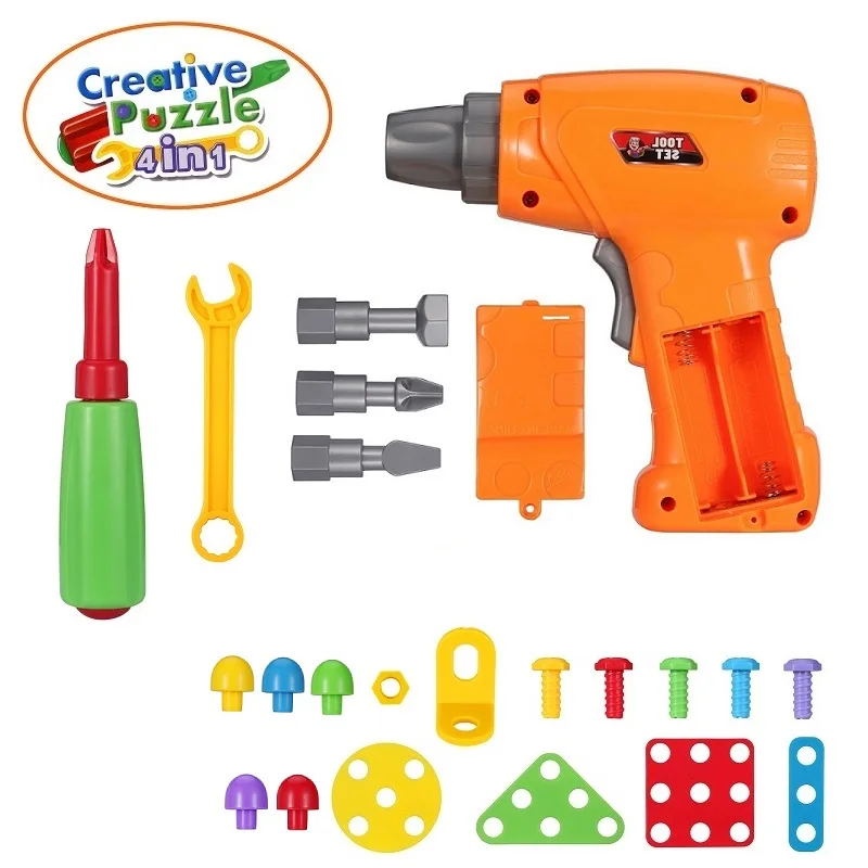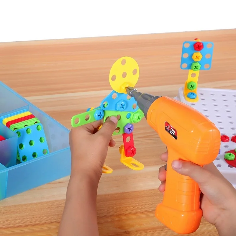Children Toy Drill Puzzle Educational Toys Kids Tool Kit ABS Plastic DIY Screw Group Toys Boys Jigsaw Mosaic Design Building Toy